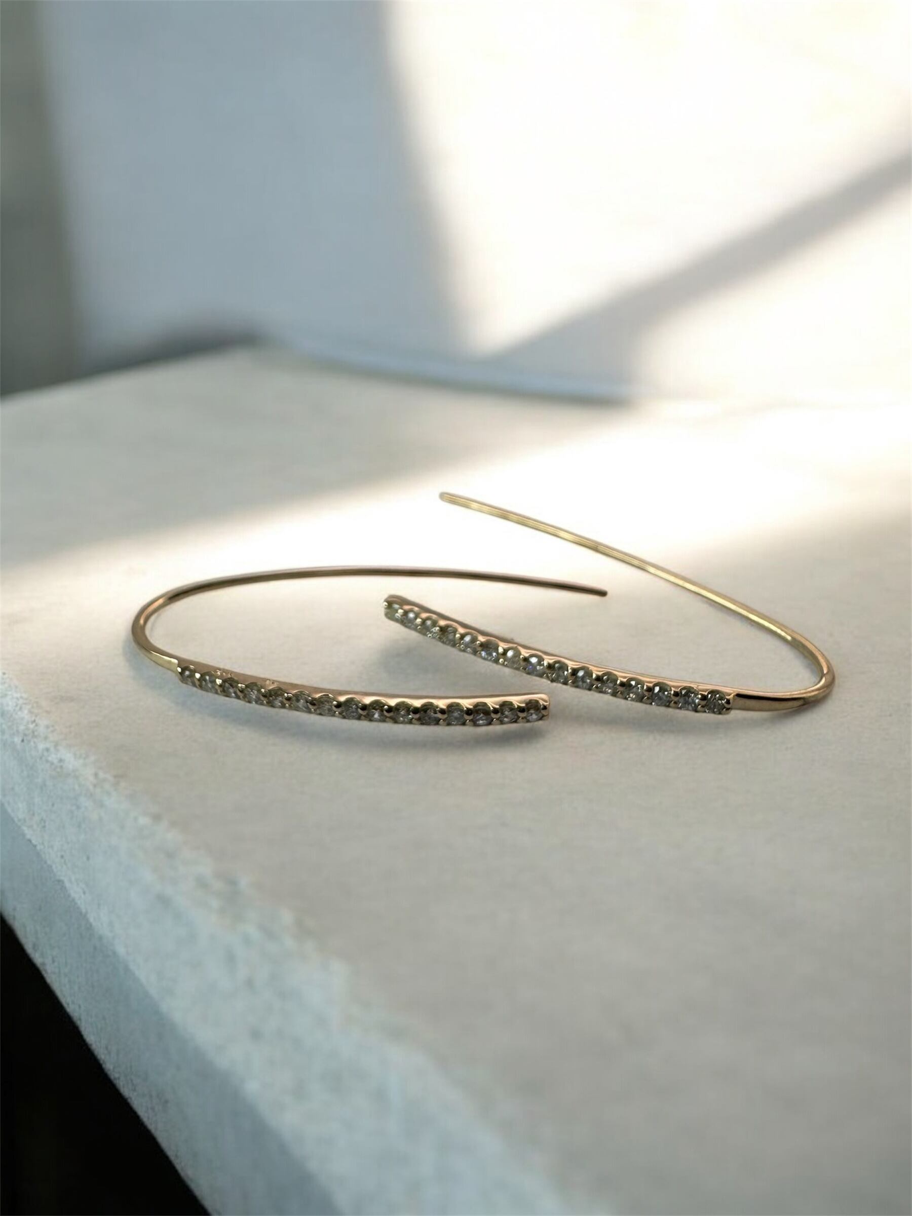 繊細な輝きのラインフックピアス