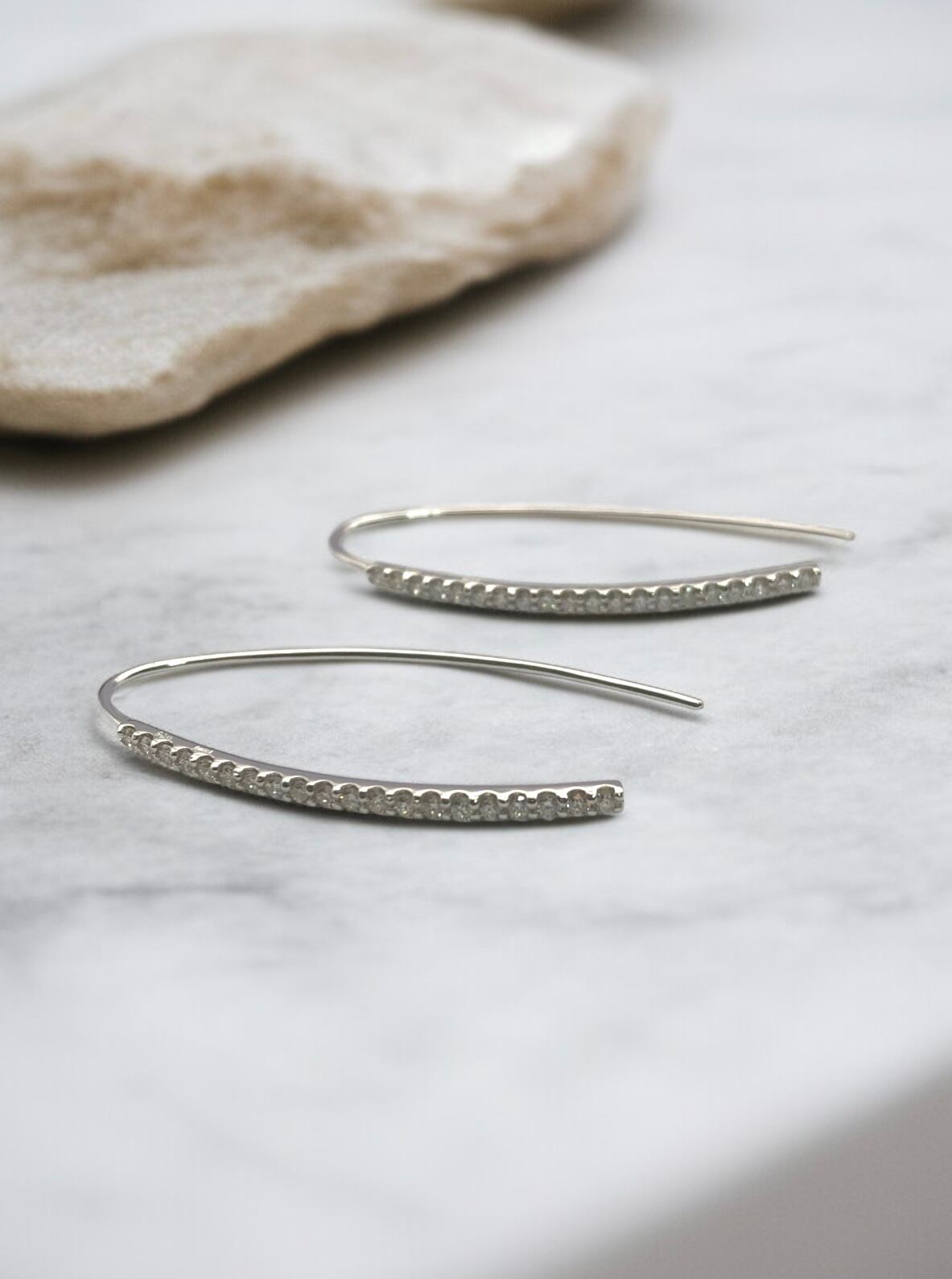 繊細な輝きのラインフックピアス